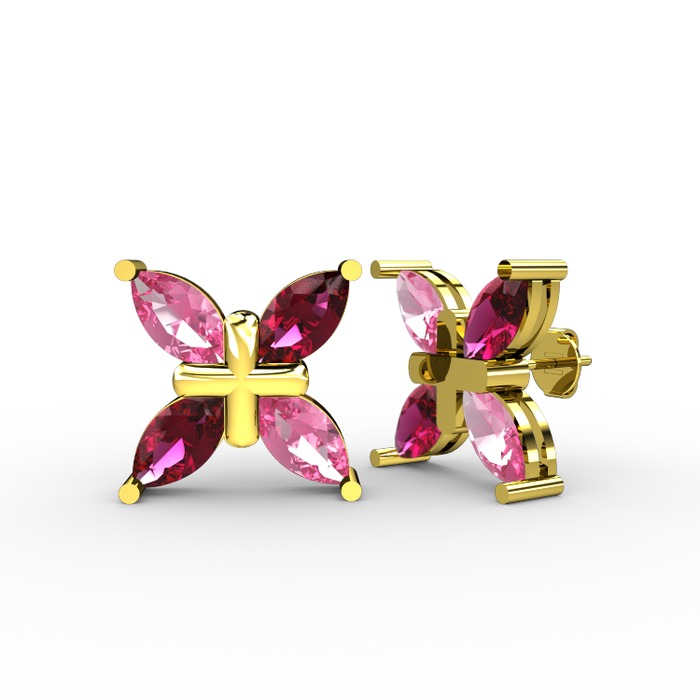 Pembe kuvars ve rodolit garnet 925 ayar altın kaplama gümüş küpe