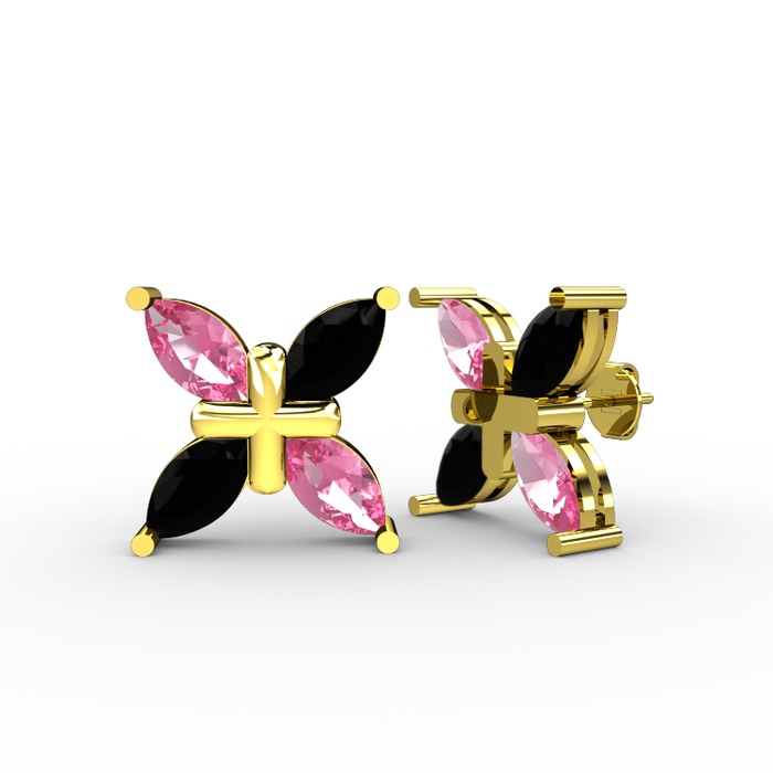 Pembe kuvars ve siyah zirkon 8 ayar altın küpe