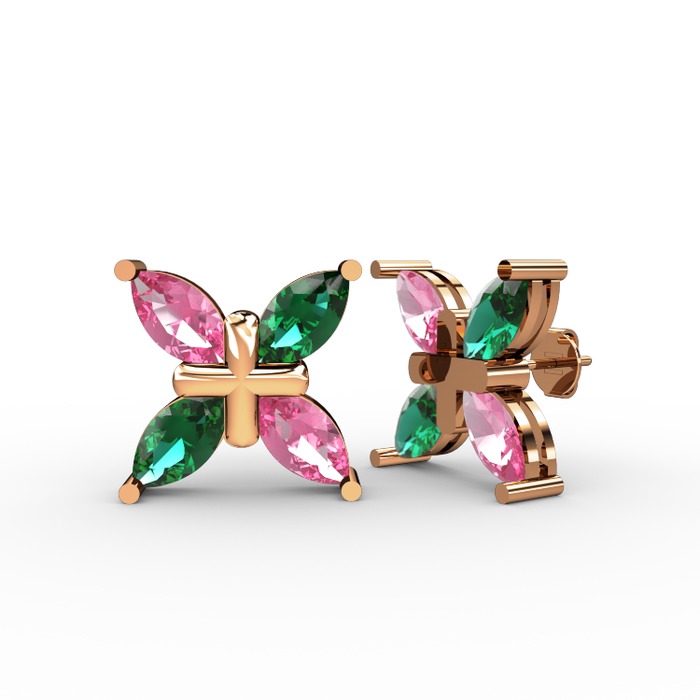 Pembe kuvars ve yeşil kuvars 8 ayar rose altın küpe