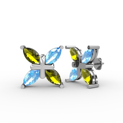 Peridot ve akuamarin 14 ayar beyaz altın küpe