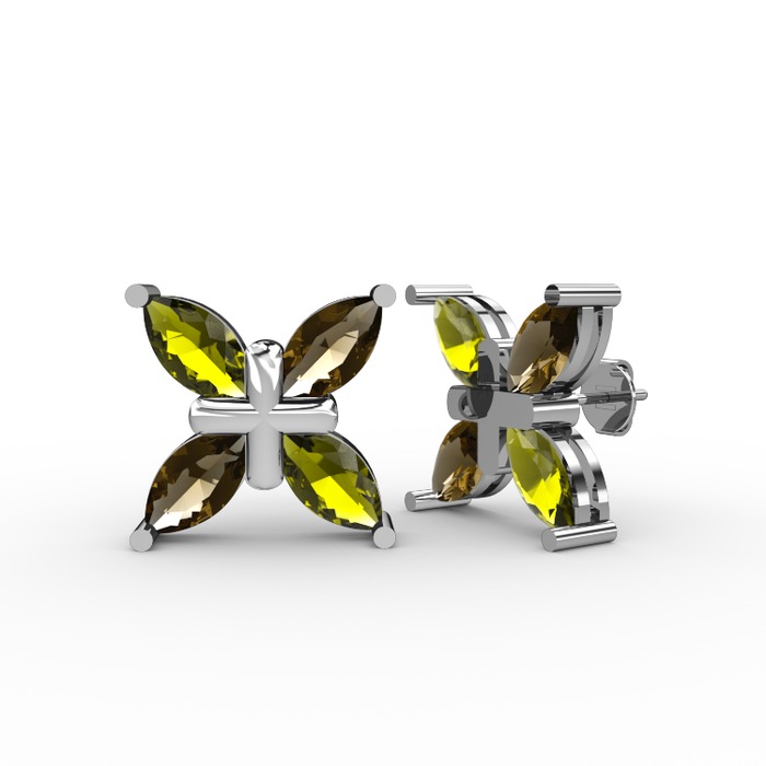 Peridot ve dumanlı kuvars 18 ayar beyaz altın küpe