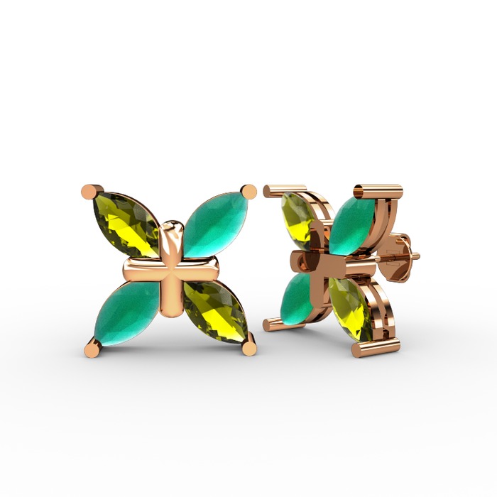 Peridot ve kök zümrüt 8 ayar rose altın küpe
