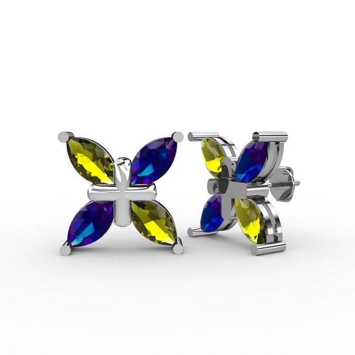 Peridot ve lab safir 8 ayar beyaz altın küpe