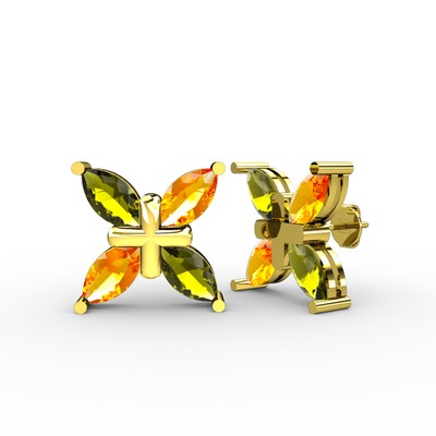 Peridot ve sitrin 925 ayar altın kaplama gümüş küpe
