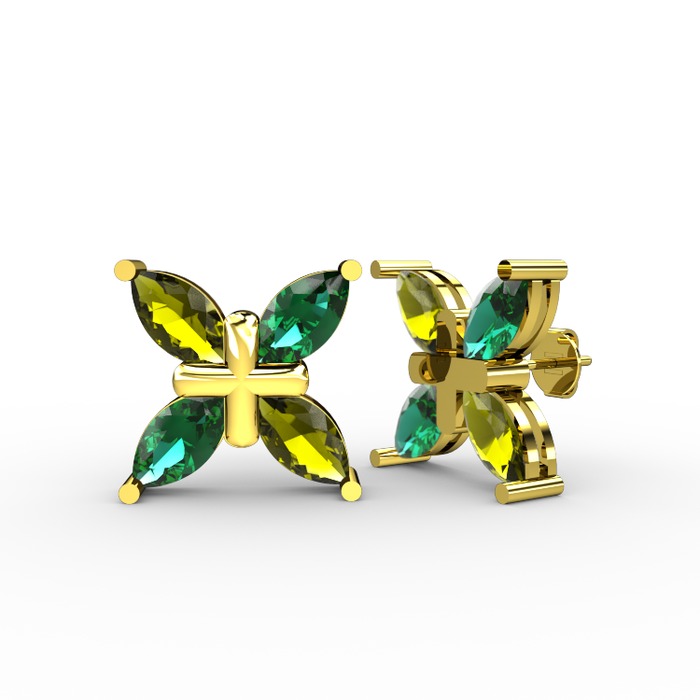 Peridot ve yeşil kuvars 925 ayar altın kaplama gümüş küpe
