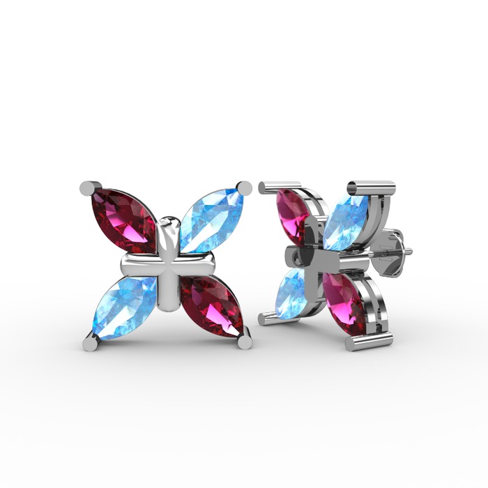 Rodolit garnet ve akuamarin 8 ayar beyaz altın küpe