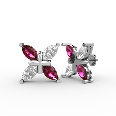 Rodolit garnet ve beyaz zirkon 14 ayar beyaz altın küpe