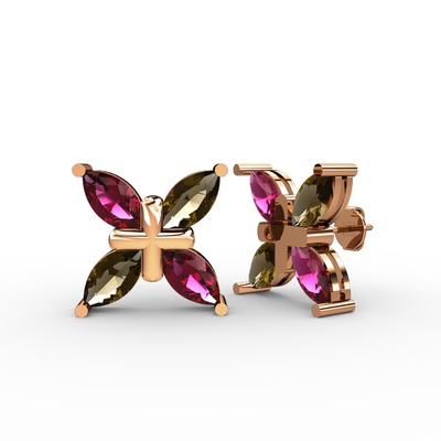 Rodolit garnet ve dumanlı kuvars 14 ayar rose altın küpe