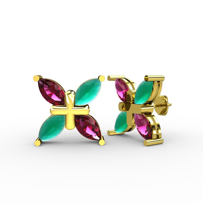Rodolit garnet ve kök zümrüt 18 ayar altın küpe