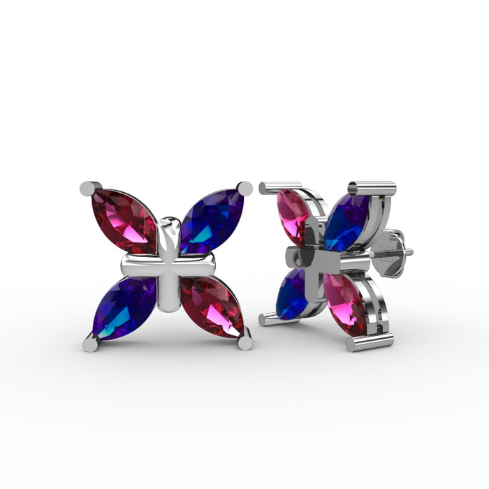 Rodolit garnet ve lab safir 8 ayar beyaz altın küpe