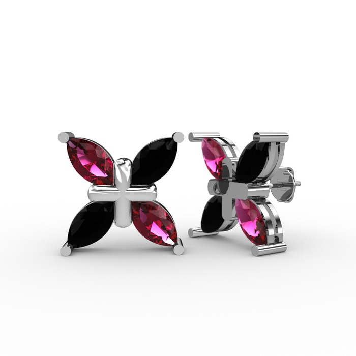Rodolit garnet ve siyah zirkon 14 ayar beyaz altın küpe