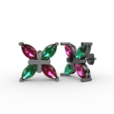 Rodolit garnet ve yeşil kuvars 925 ayar siyah rodyum kaplama gümüş küpe