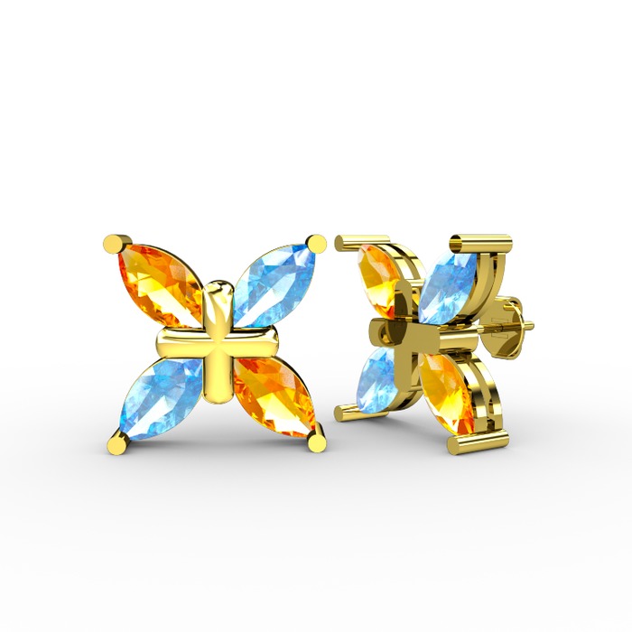 Sitrin ve akuamarin 925 ayar altın kaplama gümüş küpe