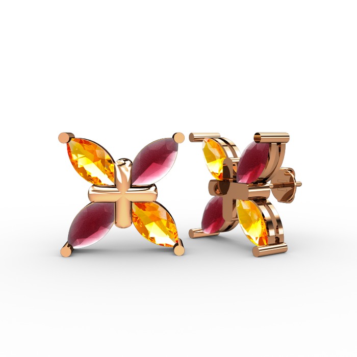 Sitrin ve kök yakut 8 ayar rose altın küpe