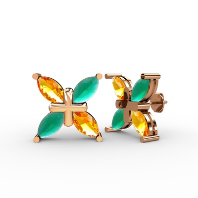 Sitrin ve kök zümrüt 18 ayar rose altın küpe