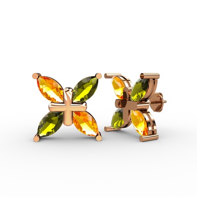 Sitrin ve peridot 8 ayar rose altın küpe
