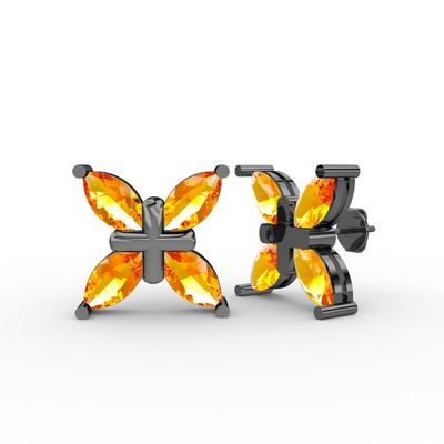 Sitrin 925 ayar siyah rodyum kaplama gümüş küpe