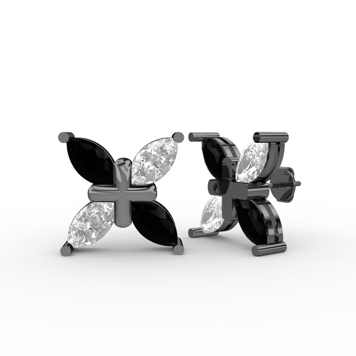 Siyah zirkon ve beyaz zirkon 925 ayar siyah rodyum kaplama gümüş küpe