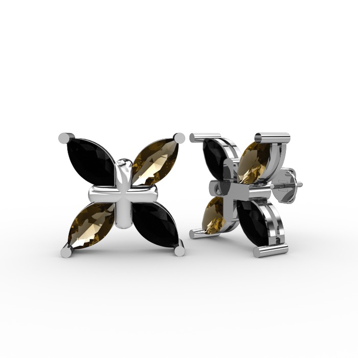 Siyah zirkon ve dumanlı kuvars 14 ayar beyaz altın küpe