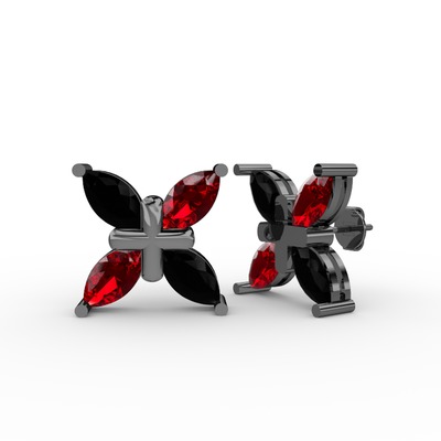 Siyah zirkon ve garnet 925 ayar siyah rodyum kaplama gümüş küpe