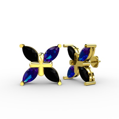 Siyah zirkon ve lab safir 18 ayar altın küpe