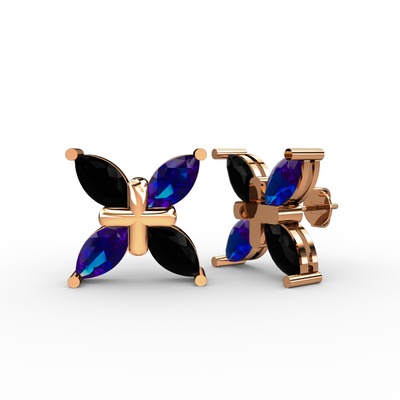 Siyah zirkon ve lab safir 925 ayar rose altın kaplama gümüş küpe