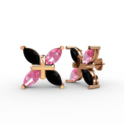 Siyah zirkon ve pembe kuvars 8 ayar rose altın küpe