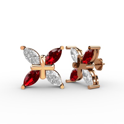 Swarovski ve garnet 18 ayar rose altın küpe