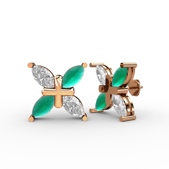 Swarovski ve kök zümrüt 18 ayar rose altın küpe