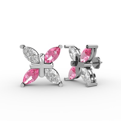 Swarovski ve pembe kuvars 925 ayar gümüş küpe