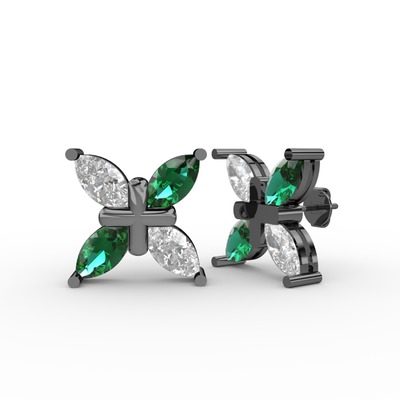 Swarovski ve yeşil kuvars 925 ayar siyah rodyum kaplama gümüş küpe