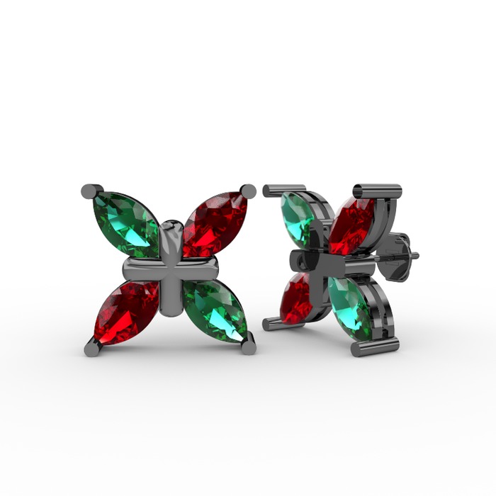 Yeşil kuvars ve garnet 925 ayar siyah rodyum kaplama gümüş küpe