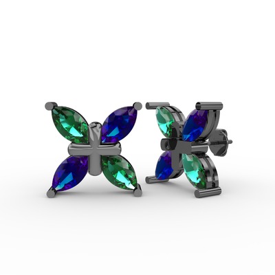 Yeşil kuvars ve lab safir 925 ayar siyah rodyum kaplama gümüş küpe