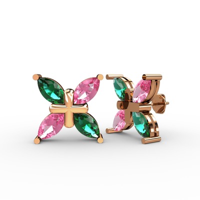 Yeşil kuvars ve pembe kuvars 14 ayar rose altın küpe