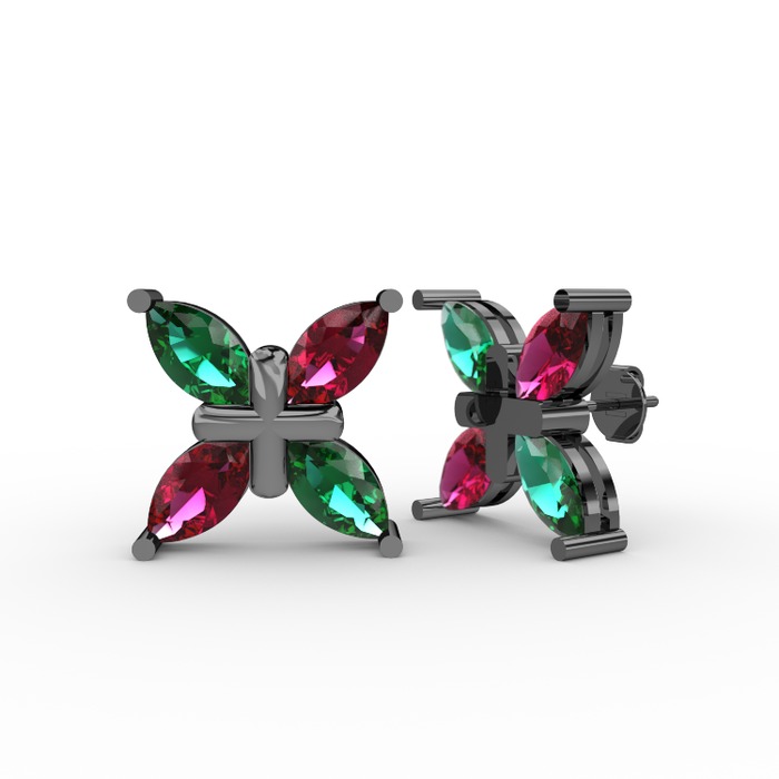 Yeşil kuvars ve rodolit garnet 925 ayar siyah rodyum kaplama gümüş küpe