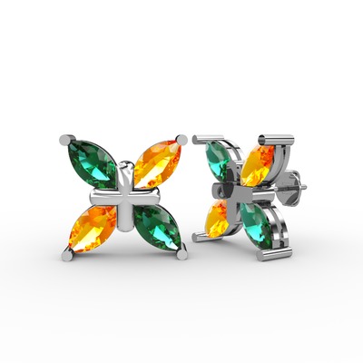 Yeşil kuvars ve sitrin 8 ayar beyaz altın küpe