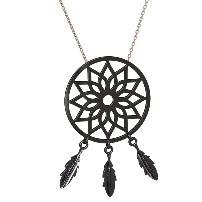 925 ayar siyah rodyum kaplama gümüş kolye (40 cm rose altın rolo zincir)