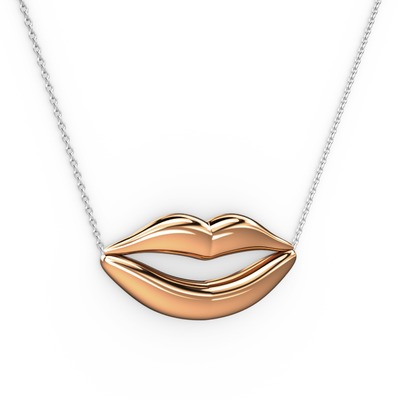 Dudak Kolye - 18 ayar rose altın kolye (40 cm beyaz altın rolo zincir)