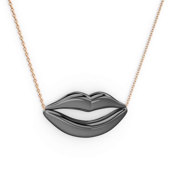925 ayar siyah rodyum kaplama gümüş kolye (40 cm rose altın rolo zincir)
