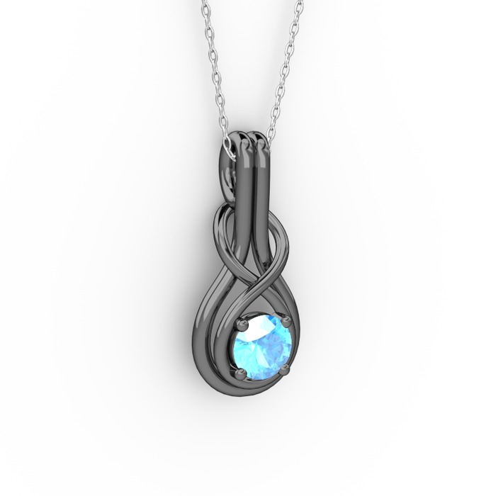 Akuamarin 925 ayar siyah rodyum kaplama gümüş kolye (40 cm gümüş rolo zincir)