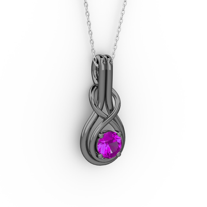 Ametist 925 ayar siyah rodyum kaplama gümüş kolye (40 cm beyaz altın rolo zincir)