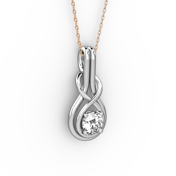 Beyaz zirkon 8 ayar beyaz altın kolye (40 cm rose altın rolo zincir)