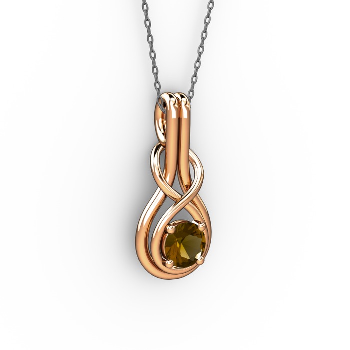 Dumanlı kuvars 14 ayar rose altın kolye (40 cm gümüş rolo zincir)
