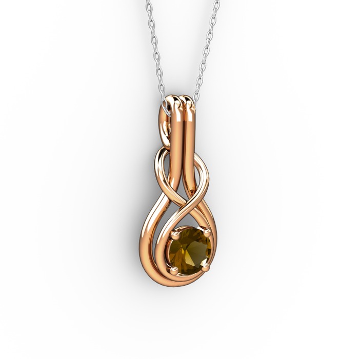 Dumanlı kuvars 14 ayar rose altın kolye (40 cm gümüş rolo zincir)