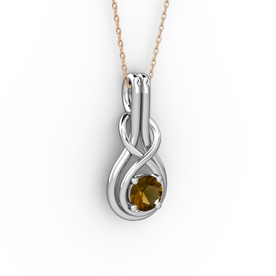 Dumanlı kuvars 925 ayar gümüş kolye (40 cm rose altın rolo zincir)