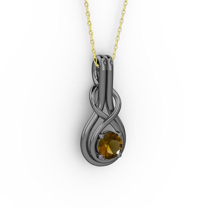 Dumanlı kuvars 925 ayar siyah rodyum kaplama gümüş kolye (40 cm altın rolo zincir)