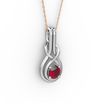 Garnet 14 ayar beyaz altın kolye (40 cm rose altın rolo zincir)
