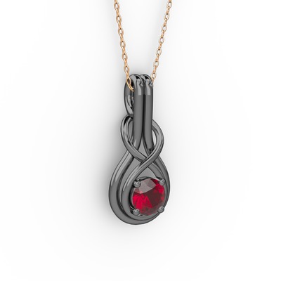 Garnet 925 ayar siyah rodyum kaplama gümüş kolye (40 cm rose altın rolo zincir)