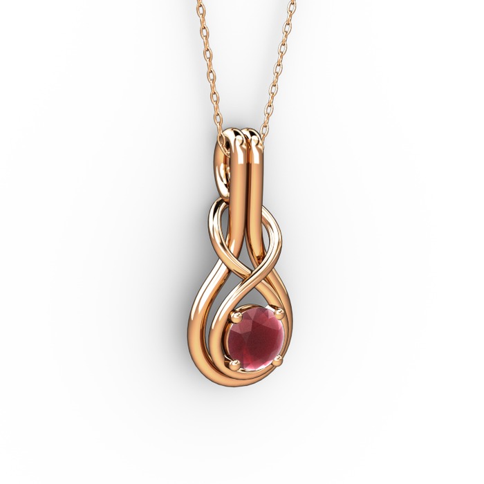 Kök yakut 14 ayar rose altın kolye (40 cm rose altın rolo zincir)