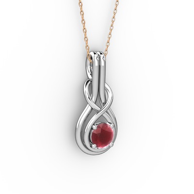 Kök yakut 18 ayar beyaz altın kolye (40 cm rose altın rolo zincir)